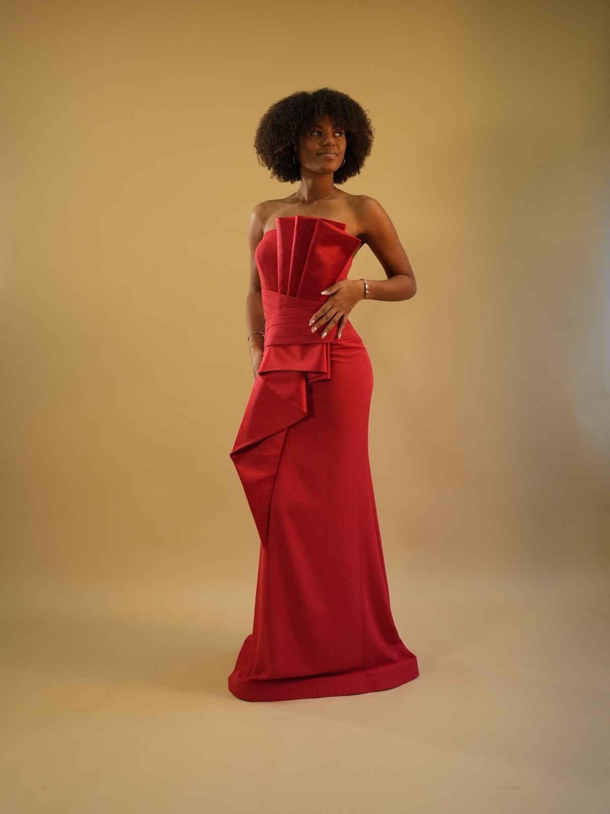 Robe bustier rouge, près du corps avec détails drapés au niveau du bustier