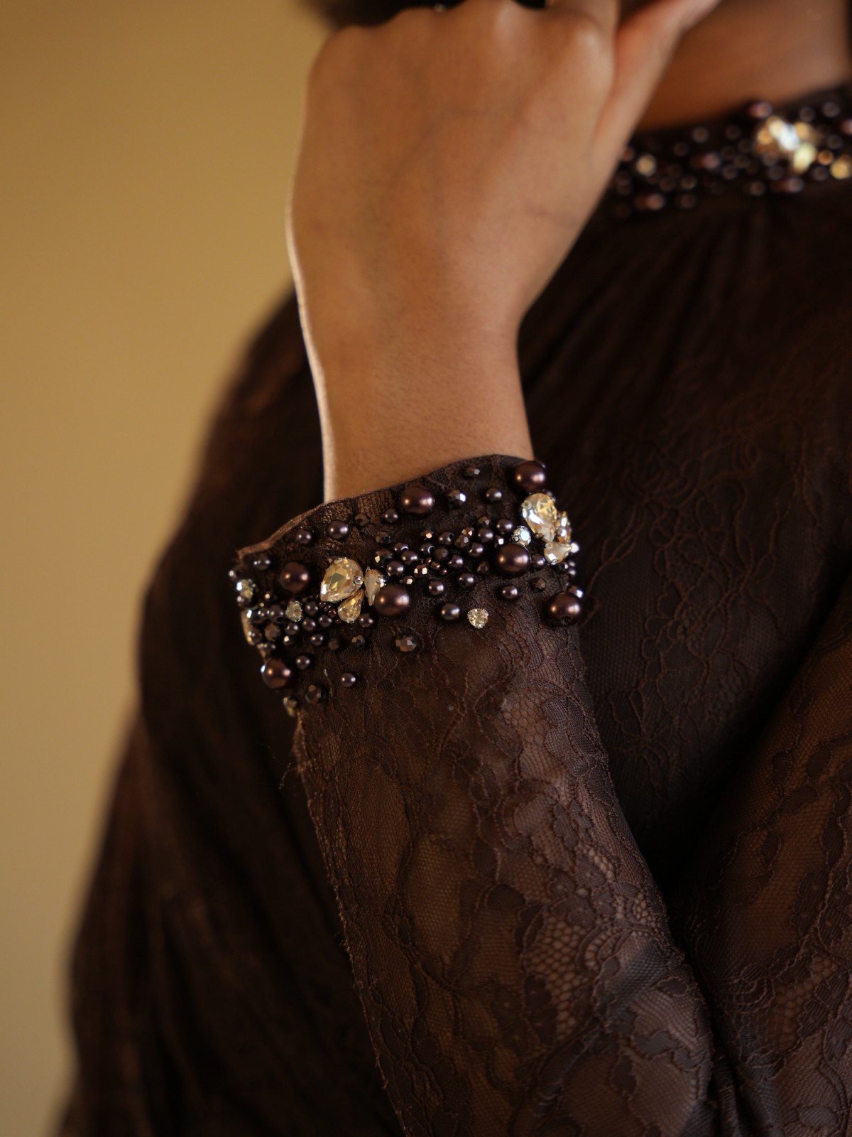 Robe longue dentelle avec ornements - marron